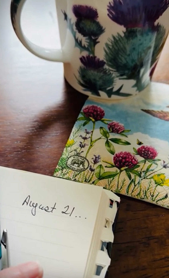 Sitting at the dining table in the small breakfast area next to my desk, I began writing in my journal. “August 21…”